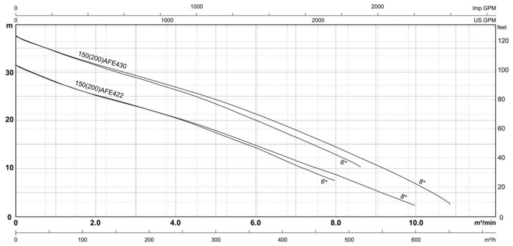| 150(200)AFE430 | 40(30) | 8″ | 124.7 | 2830 | 3″ | – | 293 |
