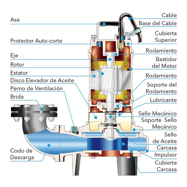 El impulsor anti atasco vórtex tipo U, produce un vórtice (efecto remolino) permitiendo el paso de lodo, materiales fibrosos largos y residuos sólidos, sin entrar en contacto con el impulsor.